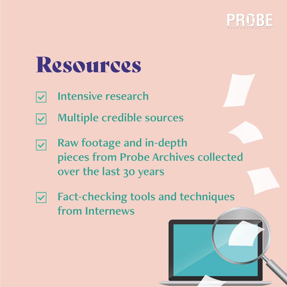 To verify dubious claims, we are armed with intensive research, multiple (credible and independent) sources, subject matter experts, fact checking tools and techniques from Internews, raw footage, and in-depth pieces collected over the last 30 years by Probe Archives.