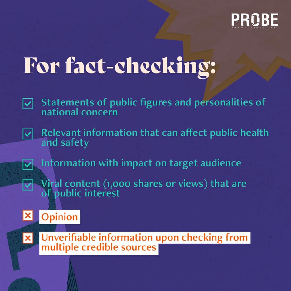 Without bias, we dissect statements from public figures and personalities of national concern, or statements made about them, scrutinize relevant information that can affect public health and safety, examine information with impact on our target audience, and probe viral content that are of public interest. As a rule of thumb, we do not fact check satire and opinion.