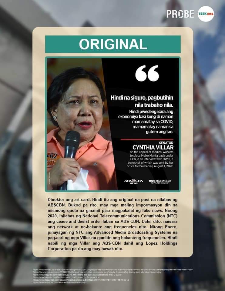May hirit daw si Senador Cynthia Villar matapos mapunta sa pamilya niya ang ere ng ABS-CBN.