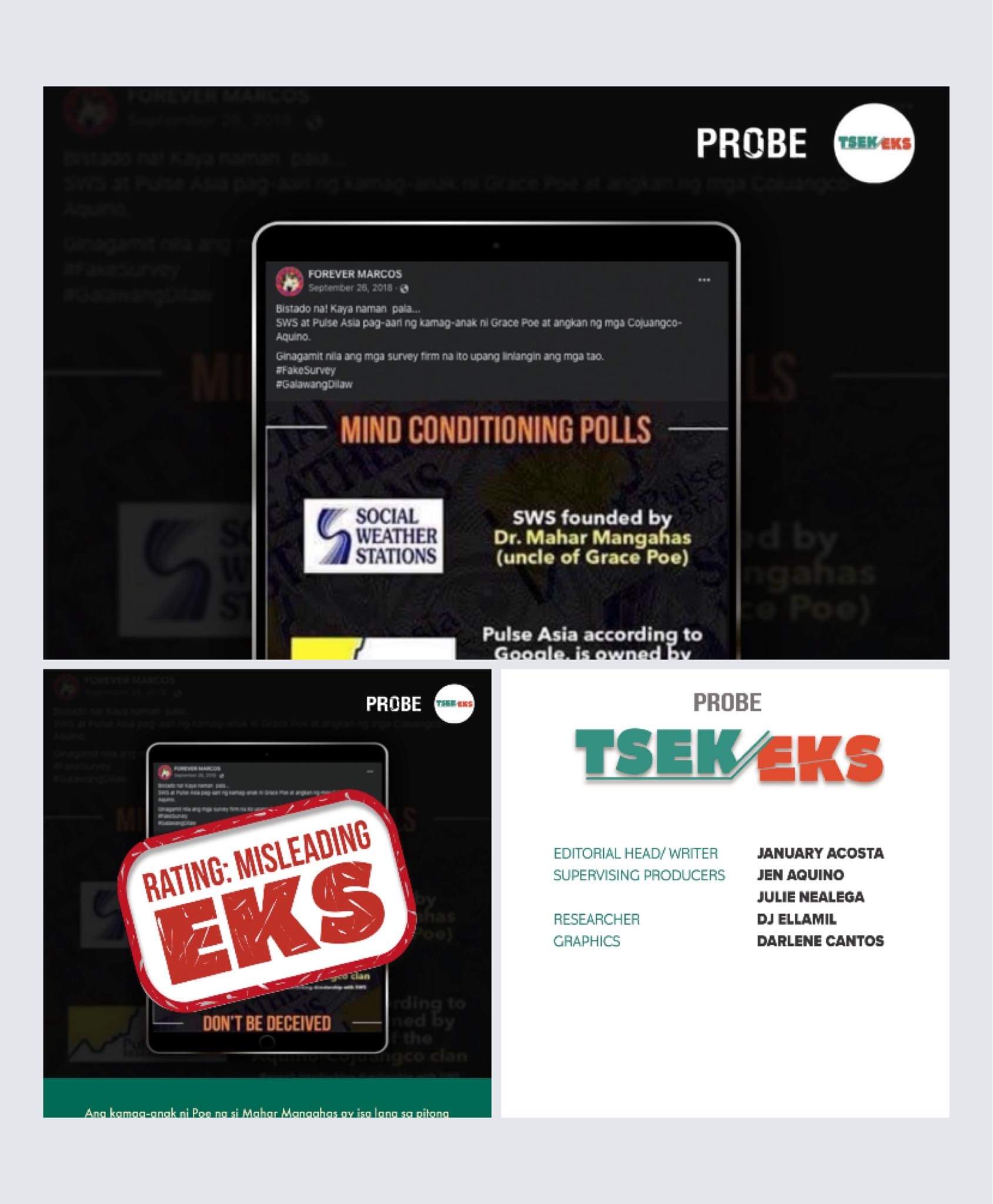 Uso na naman ang mga election survey. Pero may isang FB page na duda sa mga tao sa likod ng pollsters.
